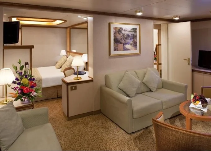 | M1 - Mini Suite s balkónom Club Class 30 m² (vrátane balkóna). Max 3 osoby (gauč). Výhody Mini Suite + výhody Club Class. | 7 324 € 3 662 € za osobu |